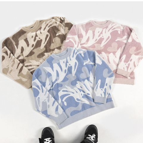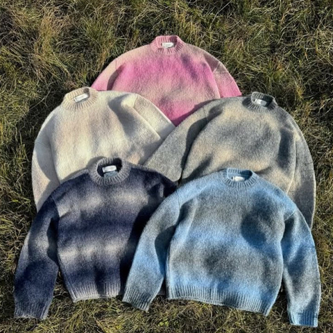 Suéter de punto desteñido con lavado ácido Suéter de punto con tinte Diseño de color Suéter de color en aerosol Suéteres teñidos Sudadera de punto con lavado ácido
