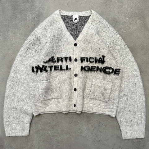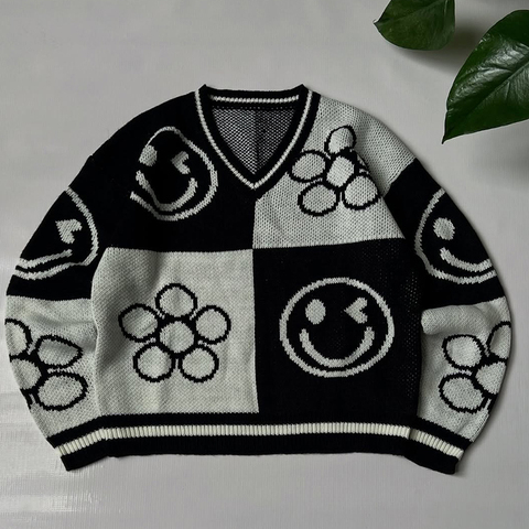 Suéter de punto Y2K de diseño informal con cuello en V y logotipo personalizado, jersey con patrón de Jacquard, suéter de punto personalizado para hombres