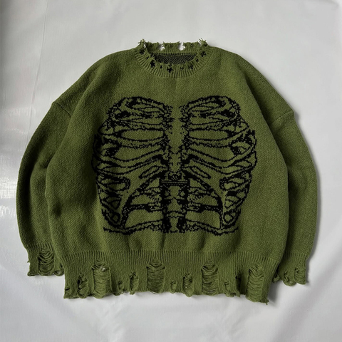 Suéter de algodón lavado para hombre, Jersey de punto acanalado, pintura en aerosol, lavado con piedra, lavado con ácido, Vintage, cuello redondo, prendas de punto acanalado